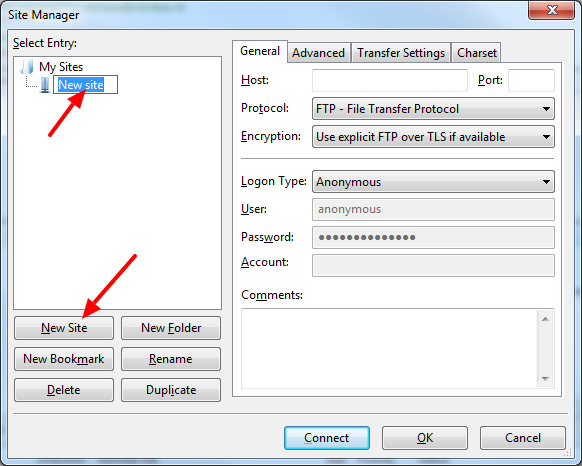 - Klik op ‘New Site’